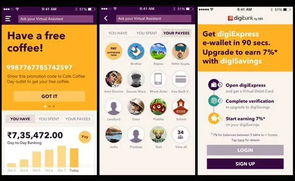 Digibank is an international bank. Development Bank Of Singapore(DBS) have launched only mobile bank “Digibank by DBS” last year.they have opened a branch in India which is situated in Mumbai.If you want to open your account through digibank it only takes 90 seconds.So this saves your time, energy and money with digibank and goes about doing what matters most. Live more, bank less.